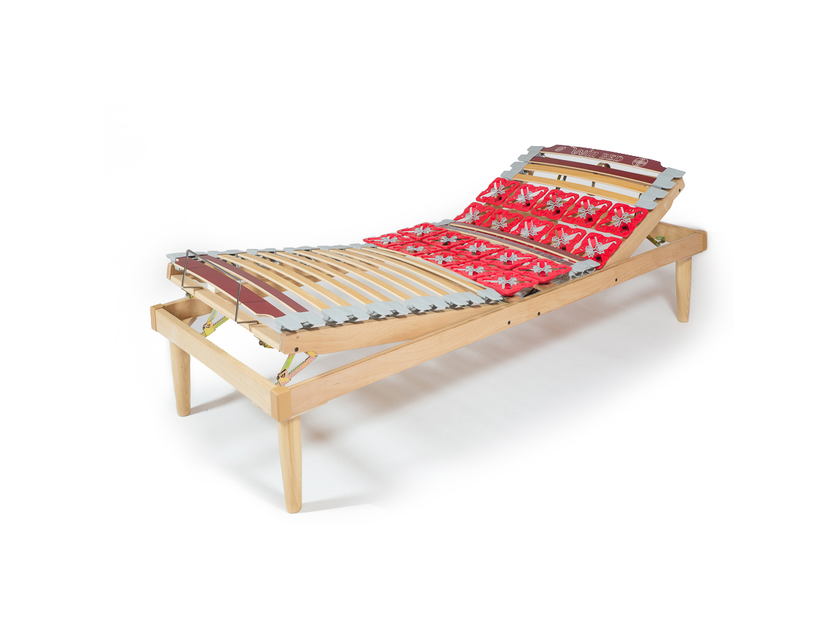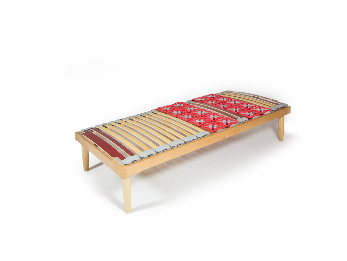 Le doghe in multistrato di faggio e i supporti elastici sostengono in maniera ottimale l'intera colonna vertebrale, indipendentemente dalla posizione assunta nel sonno.